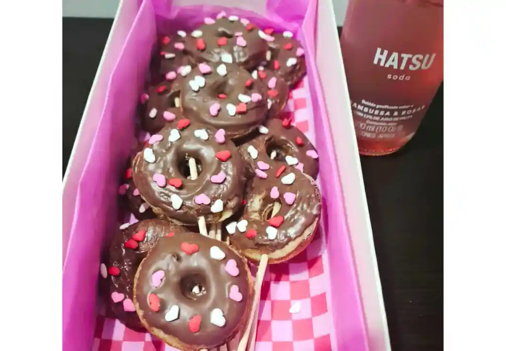 Mini Donas con cobertura de chocolate negro con grajeas surtidas.