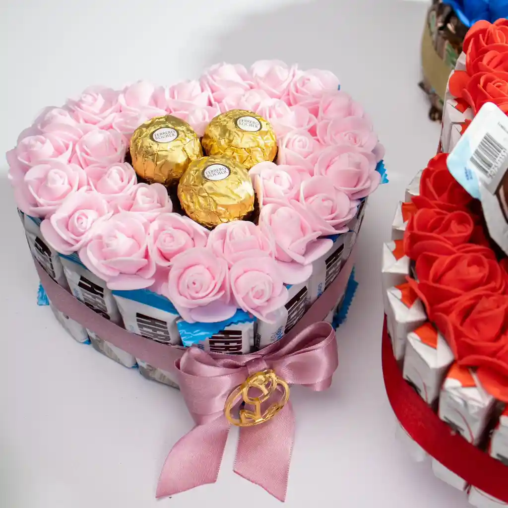 Deliciosos hersheysdecorados con rosas sinteticas y 3 ferreros