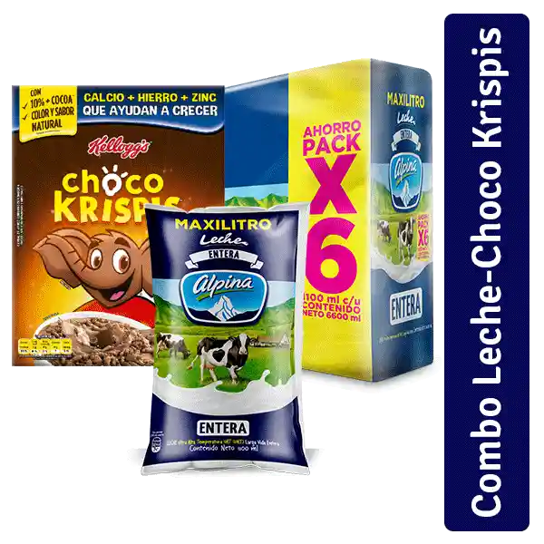 Cereal Choco Krispis 700gLeche Alpina Entera Bolsa 1100 mL x 6