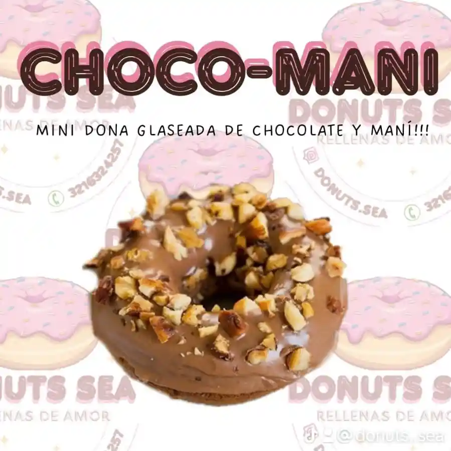 Mini donas glaseado con chocolate de alta calidad y trocitos de mani