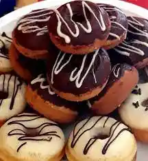 Mini Donas mixtas x18 cobertura de chocolate negro , cobertura de chocolate blanco con grajeas surtidas.