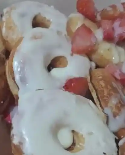 Mini Donas con cobertura de chocolate blanco con grajeas surtidas.