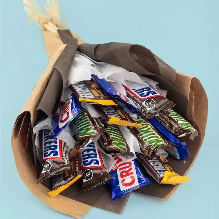 Incluye: Ramo decorativo, hershey´s x4, snickers x3, milky way x4, jumbo mediana x3.