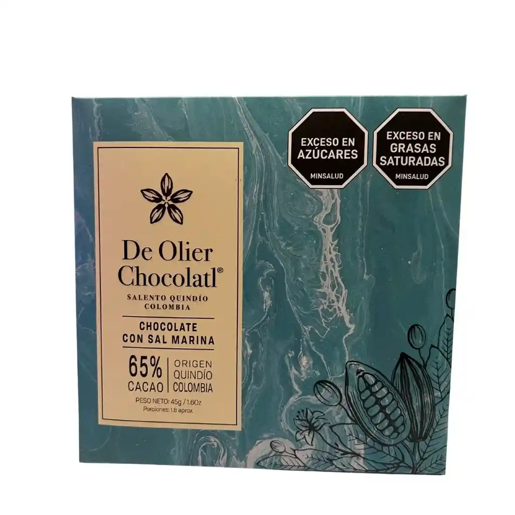 Cacao 65% con Sal Marina - Balance sensorial Experimenta el umami en nuestro chocolate: amargo, ácido, dulce y salado en perfecta armonía. El cacao ofrece notas amargas y ácidas equilibradas con el dulce del azúcar, más una pizca de sal marina harán que resalte cada sabor Descubre esta experiencia sensorial única del chocolate salado, con granos cultivados directamente por agricultores quindianos y fabricado completamente en el lugar de origen.