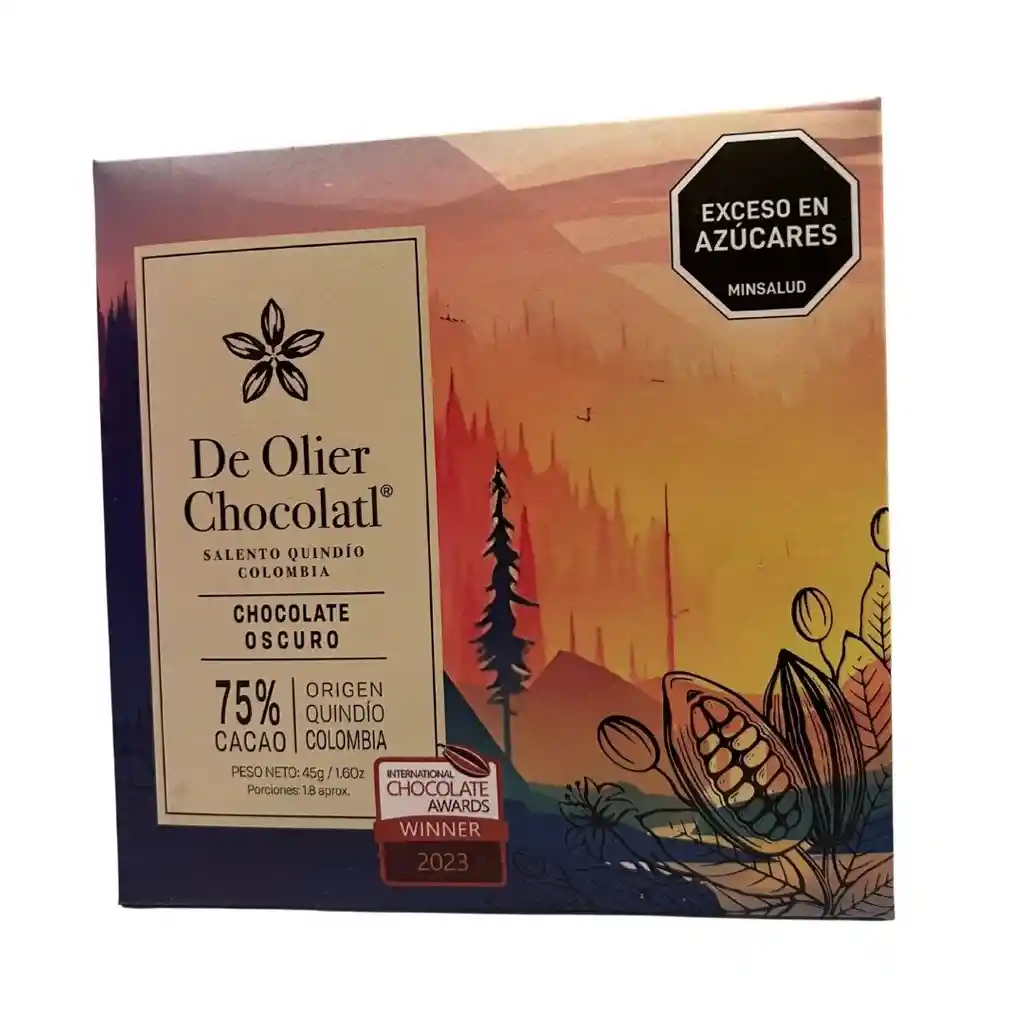 Cacao 75% - Terroir Quindiano Ganador de la medalla de bronce en el salón de chocolate de Colombia 2023. Explora el favorito de los maestros chocolateros, siguiendo la tradición Bean-To-Bar, esta fusión sensorial realza el auténtico "terroir" del cacao quindiano, equilibrado amargos y dulzura. ¡Deleita tu paladar con una experiencia única de sabor y calidad! Con granos cultivados directamente por agricultores quindianos y fabricado completamente en el lugar de origen.