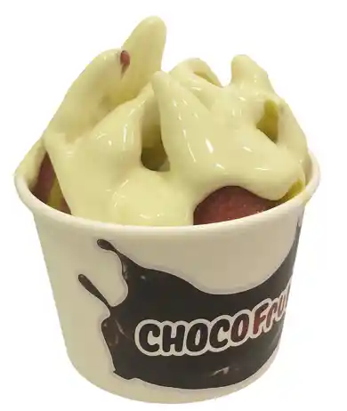 vaso 8 onz chocolate blanco con fresa , mango , kiwi