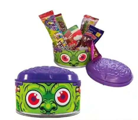 Estuche Cerebro Con Dulces Halloween 75gr Lindos estuches en forma de cerebros acrílicos de halloween para regalar a los pequeños de casa y a sus amiguitos, también son ideales para obsequiar a tus amigos y conocidos! Vienen llenos con un rico surtido de dulces.