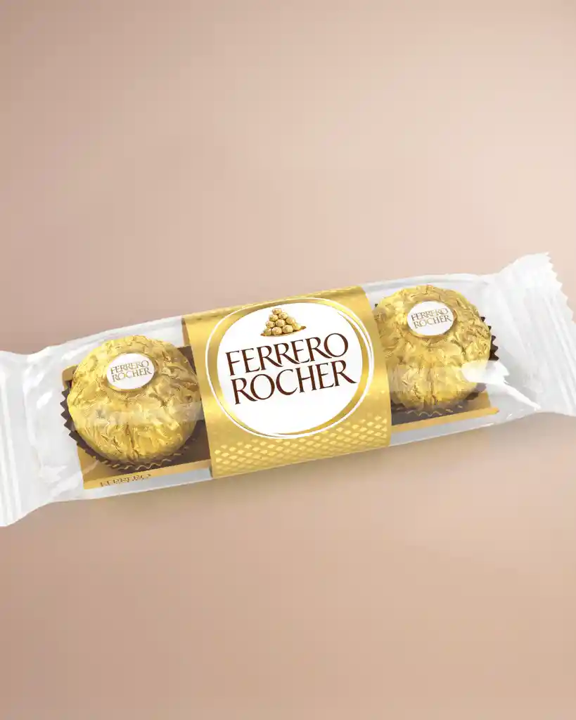 Tripack chocolates Ferrero Rocher. Marca: Ferrero Rocher. Características: Tres chocolates. Almacenamiento: Consérvese en un lugar limpio, fresco y seco, despúes de abierto consúmase en el menor tiempo posible.