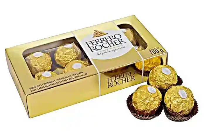 Descripción Los famosos bombones Ferrero Rocher aparecieron en el mercado en 1982, casi 40 años después de la empresa haber comercializado su primer producto. Sus INGREDIENTES son simples: chocolate, leche, cacao, avellanas, azúcar, lecitina de soja, harina de trigo y gasificantes. ¿Fácil no? Dentro del paquete dorado de un bombón Ferrero Rocher hay un dulce multiestrato que parece un poco una magia salida de la fábrica de Willy Wonka: una avellana tostada dentro de una funda de wafer lleno de crema de avellanas, con una cobertura de chocolate con praliné de avellanas. DETALLES: * Chocolate de Leche y Avellanas * Ferrero Rocher * Caja Dorada x8 Unidades (Sellados) * Articulo Nuevo, En su caja. * Somos Distribuidores de la Marca. * Entregas el Mismo Día. (Bogota)