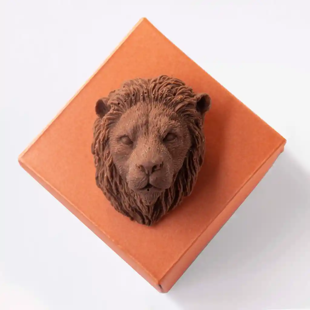 El rey de la selva tiene un exterior de chocolate de leche y un relleno de ganache de chocolate de leche con uchuva.Reino: AnimaliaClase: AltaGraciaOrden. Animal KingdomFamilia. Chocolate de LecheSe alimenta de: Ganache de chocolate de leche y uchuva