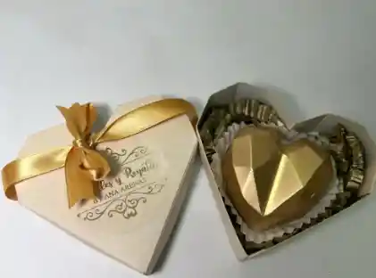 Chocolate relleno en caja en forma de corazón ❤ El chocolate relleno puede ser un corazón, una rosa o una estrella, dependerá de la disponibilidad.