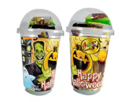 Vaso Halloween con Dulces 55 gramos Lindos vasitos plásticos con tapa y estampado de halloween para regalar a los pequeños de casa y a sus amiguitos, también son ideales para obsequiar a tus amigos y conocidos! Vienen llenos con un rico surtido de dulces.