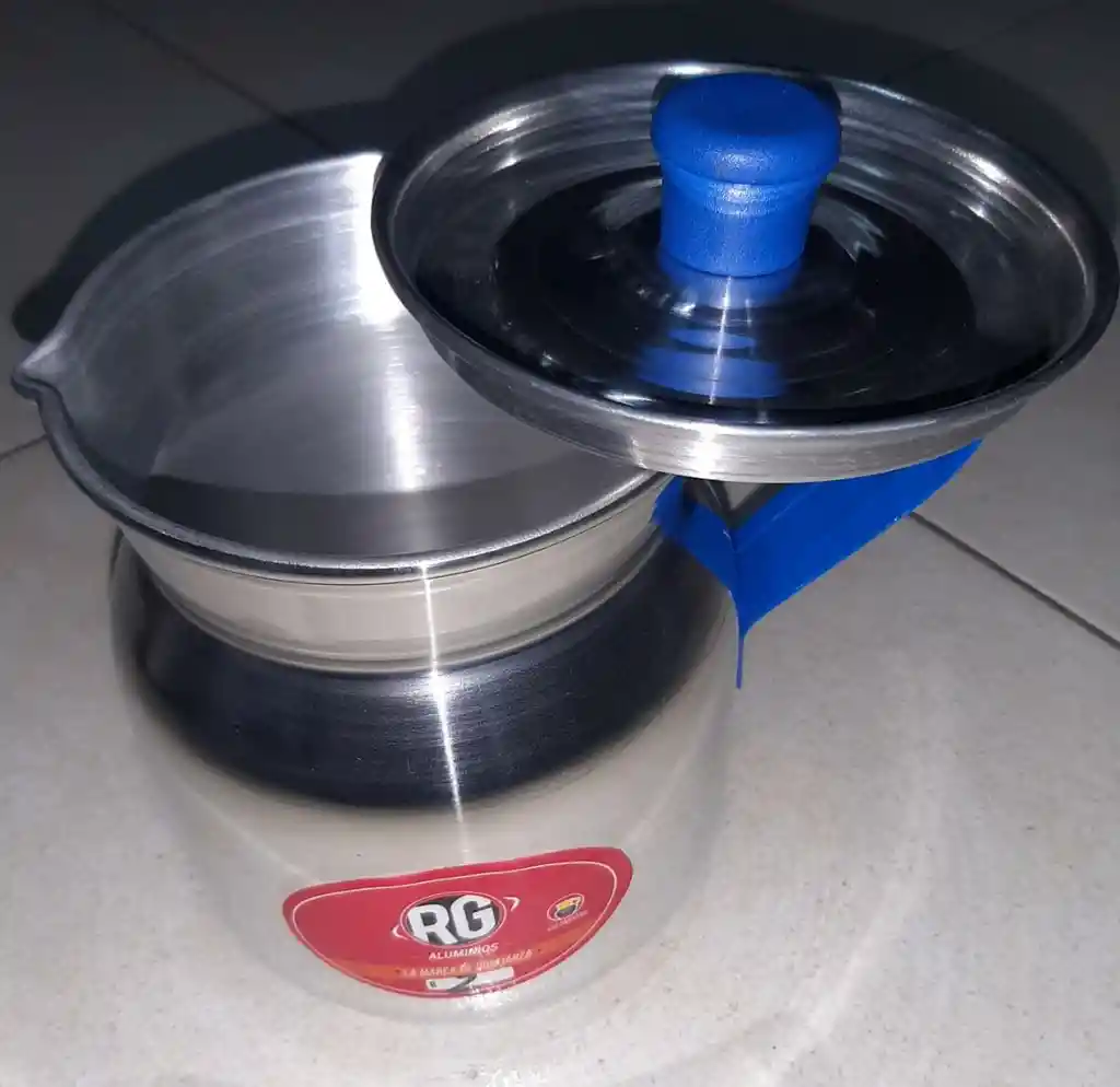 Chocolatera en aluminio #2 con tapa de capacidad de 1 litro y 1/2 tapa con perrilla de plastico para mejor agarre especial para bebidas calientes