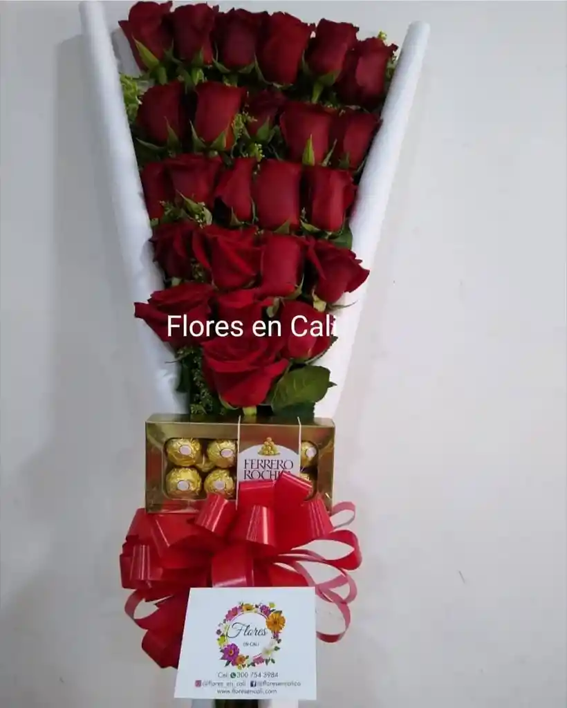 Bouquet 24 Rosas acompañado de caja de chocolates Ferrero