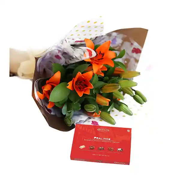 BOUQUET DE LIRIOS MÁS CHOCOLATES