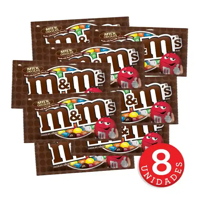 ACERCA DE ESTE PRODUCTO MyMs de chocolate de leche. Los chocolates mas divertidos y reconocidos. Estan cubiertos con una capa dulce de diferentes colores *** QUÉ INCLUYE *** * 8 MyMs de chocolate de leche CARACTERÍSTICAS: * Contiene chocolate exclusivamente * Divertidos dulces de chocolate * Cada bola de chocolate viene cubierta con una capa dulce de diferentes colores: amarillo, azul, rojo, verde, naranja y marrón
