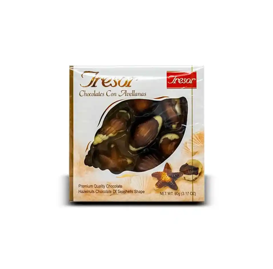 Los Chocolates Tresor con Avellanas son una delicia irresistible que lleva el placer del chocolate a otro nivel. Cada bombón, cuidadosamente elaborado con forma de conchas marinas, ofrece una experiencia única en cada bocado. La combinación de un chocolate de alta calidad y la textura crujiente de las avellanas es perfecta para quienes buscan un momento de indulgencia en su día a día. Este estuche de 90g es ideal para compartir con amigos o disfrutar en solitario. La presentación elegante lo convierte en un excelente complemento para ocasiones especiales o un simple capricho. Cada bombón está diseñado para derretirse en la boca, liberando una mezcla de sabores que deleitan a los amantes del chocolate. Aunque no es apto para celíacos, su exquisito sabor y textura lo hacen destacar entre otros productos de la categoría. Atrévete a saborear esta obra maestra del chocolate y haz que cada momento cuente, disfrutando de un producto que combina calidad, sabor y un diseño atractivo.
