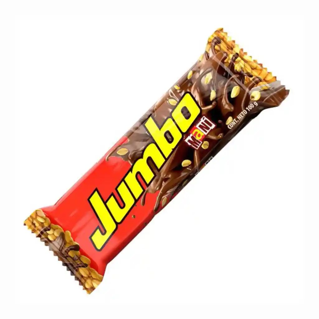La chocolatina Jumbo Maní es la mezcla perfecta entre la suavidad del chocolate real que se derrite en tu boca y un crujiente cacahuete delicadamente horneado