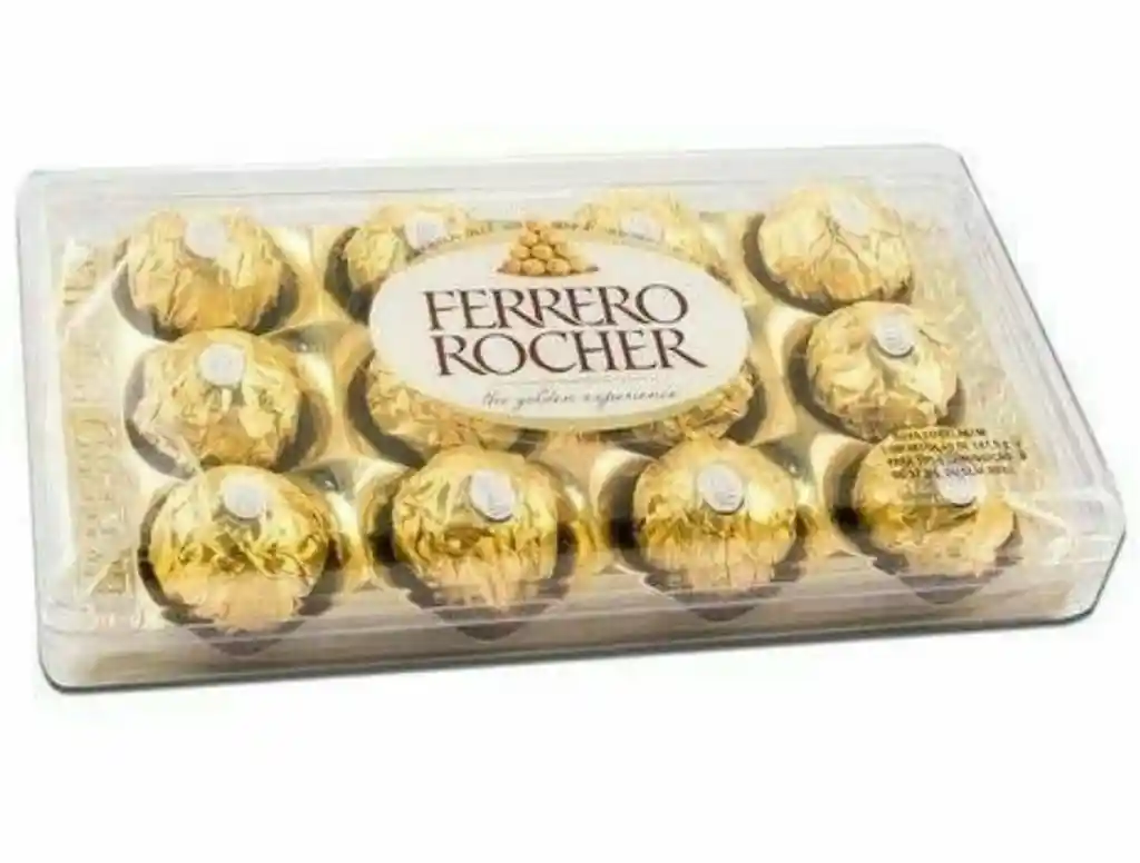 estuche en acrilico con 12 bombones de ferrero chocolate y almendra