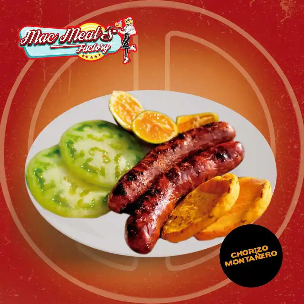 CHORIZO ARTESANAL, ACOMPAÑADO DE AREPA, LIMON, Y RODAJAS DE TOMATE RIÑON