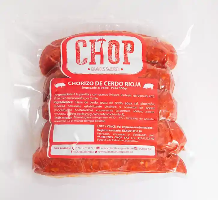 Carne de cerdo con base de ajo y paprika dulce. Producto clásico de la región de Rioja. Su perfil de sabor con un toque ácido-dulce creará una sensación única en el paladar. Excelente para preparar granos (frijoles, lentejas, garbanzos, etc), tortilla española y una infinidad de recetas locales e internacionales.