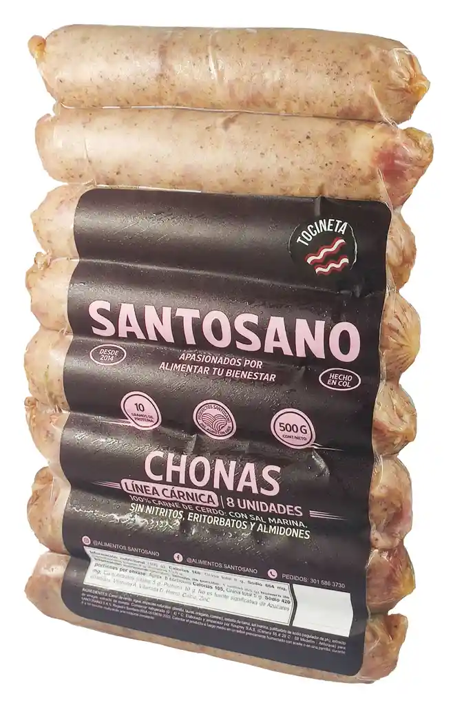Chorizos Artesanales Tocineta Santosano x 8 Unds