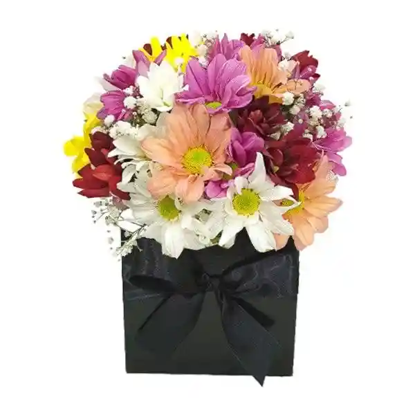 Caja decorada con variedad de flor, ideal para alegrar y expresar tus sentimintos a esa persona especial en si oficina o lugar de trabajo.