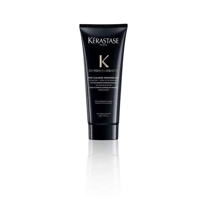 Kérastase Chronologiste Pré-Cleanse Régénérant Hair Scrub 200ml es un champú de cuidado purificante para cuero cabelludo y cabello con pérdida de vitalidad. En este sentido, esta gama Chronologiste proporciona una experiencia sensorial excepcional y lujosa perfecta para todo tipo de cabello. En concreto, este champú debe utilizarse antes del champú habitual ya que desintoxica y purifica el cabello. Es decir, elimina hasta un 96 % más de restos de contaminación que un champú normal. De esta forma, el cuero cabelludo queda sin ningún rastro de suciedad para que el champú pueda lavarlo e hidratarlo más profundamente.