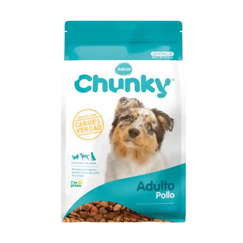 Chunky Concentrado para perros adultos con delicioso sabor a pollo y arroz. Nutrición completa para una salud óptima y un pelaje brillante. Favorece la digestión y protege el tracto gastrointestinal. El concentrado para perros adultos Chunky con sabor a pollo y arroz será una excelente opción de alimentación saludable para tu perro. Su fuente principal de proteína viene del pollo y es un alimento fabricado bajo exigentes normas de calidad que proporcionará una nutrición completa y balanceada a tu perro adulto. Gracias a sus altos niveles de nutrientes como vitaminas, minerales, antioxidantes, ácidos grasos omegas, entre otros; Este concentrado contribuirá a la buena salud en general y al mantenimiento de la piel y el pelaje. Además, gracias al DH pack y a su alto nivel de fibra también favorecerá la digestión y la protección del tracto gastrointestinal. La calidad de la nutrición de tu mascota afecta directamente a su calidad de vida. Con Chunky Concentrado para perros puedes estar seguro de que estás proporcionando una base sólida para una vida larga y saludable.