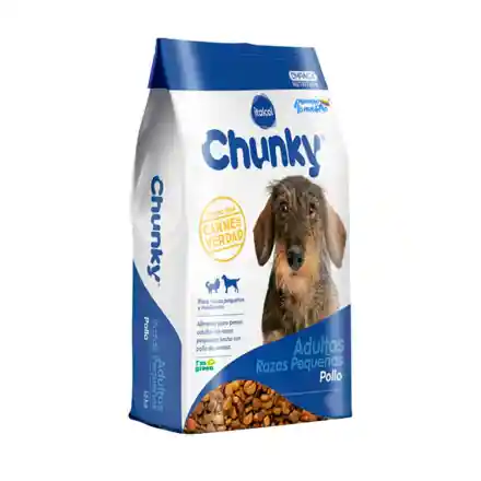El concentrado para perros adultos de razas pequeñas Chunky es un alimento ideal para contribuir a una alimentación completa y balanceada que proporcionará los nutrientes adecuados para mantenerlos sanos y activos. Ya que las necesidades nutricionales de los perros de razas pequeñas tienden a ser diferentes, pues por lo general sus estómagos son más sensibles y pequeños. La fórmula de este concentrado cuenta con ácidos grasos, vitaminas, minerales y DH pack que favorecerán su salud en general. Además sus palatables croquetas son más pequeñas con el fin de que sean fáciles de masticar y de disminuir la acumulación de sarro en los dientes
