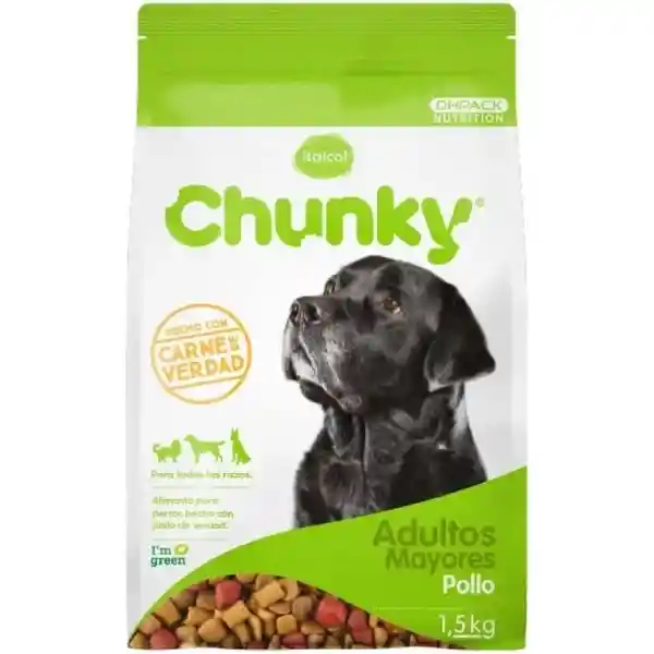 Chunky Adultos Mayores en presentación es un alimento especialmente diseñado para satisfacer las necesidades nutricionales de los perros mayores. Esta fórmula equilibrada y completa está elaborada con ingredientes de alta calidad para proporcionar el soporte nutricional necesario para mantener la salud y el bienestar de tu mascota durante esta etapa de su vida. Con su combinación específica de nutrientes Chunky Adultos Mayores es la opción ideal para cuidar a tu perro mayor.
