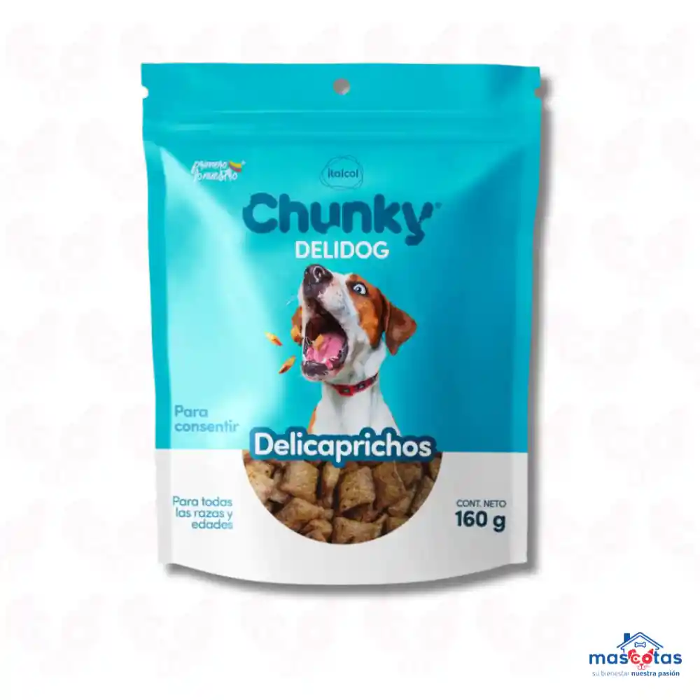 Un snack delicioso y nutritivo para perros Exquisitamente diseñado para satisfacer el paladar de tu mejor amigo, el Chunky Delicaprichos x 160 grs es más que un simple bocadillo. Este snack se convierte en una recompensa especial ideal para entrenar, consentir o simplemente fortalecer el vínculo con tu mascota. Pensado para perros de todas las edades, su tamaño y textura son perfectos para facilitar un consumo cómodo y disfrutable. Ingredientes de calidad y beneficios para la salud El Chunky Delicaprichos está elaborado con ingredientes cuidadosamente seleccionados, brindando una mezcla de sabor y nutrición. Rico en vitaminas y proteínas esenciales, contribuye al bienestar general de tu perro. Además, su fórmula está diseñada para cuidar la salud dental al ofrecer una textura que ayuda a eliminar la placa, mientras satisface el instinto natural de masticación. Ideal para cualquier ocasión Ya sea como recompensa durante el entrenamiento, como un premio casual, o incluso para brindar un momento especial con tu mascota, este snack es versátil y fácil de llevar. La presentación de 160 gramos asegura un uso prolongado y práctico para aquellas situaciones donde necesites recompensar a tu perro con algo delicioso y especial. No esperes más para consentir a tu mascota con Chunky Delicaprichos, el snack que combina calidad, sabor y nutrición para hacer feliz a tu compañero de vida.