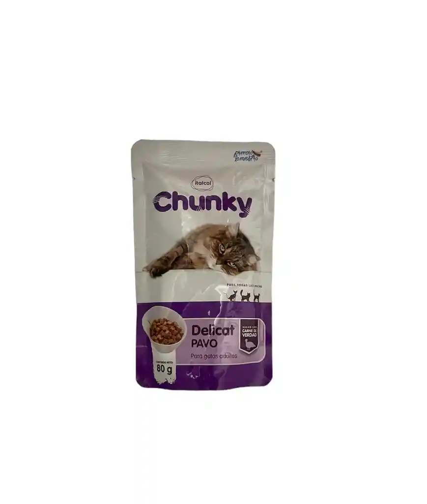 Delicat trozos de pavo es un delicioso y nutritivo alimento completo para tu gato, de pavo y la adición de otros ingredientes seleccionados que aseguran un excelente plato.