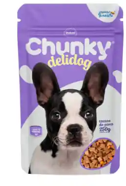 La comida húmeda para perros de la línea de productos Delidog de Chunky es una sabrosa opción de alimentación para perros de todas las razas. Estos trozos húmedos con sabor a carne pavo están fabricados con carne real y 100% garantizada que aportarán nutrientes, vitaminas, minerales y ácidos grasos a la alimentación diaria de tu perro.