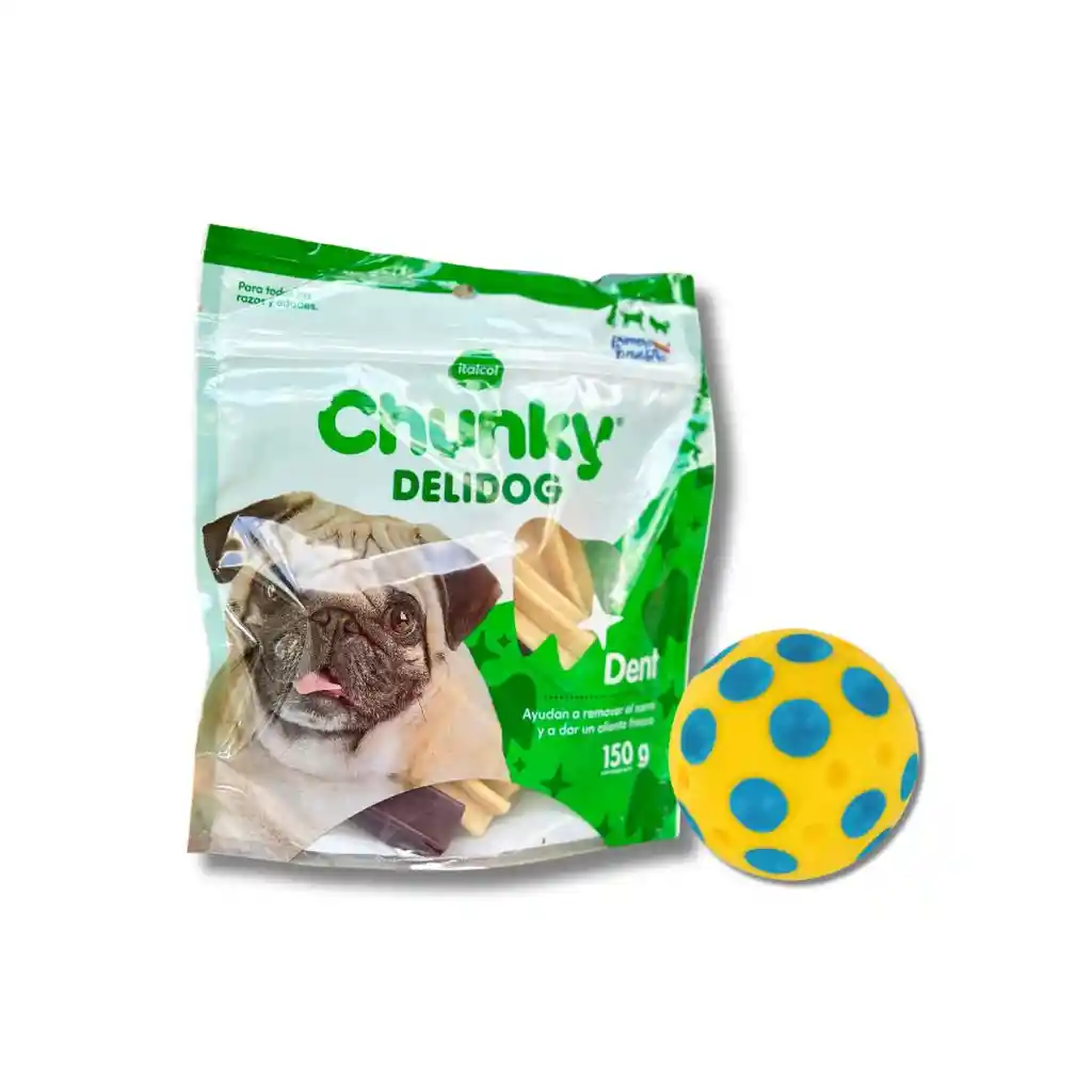 Ricos snacks para perros que además de brindarles una rica experiencia de sabor, también se encargará de cuidar su salud dental, retirando el sarro y la placa acumulada + Pelota Big Dog Amarilla Blanda con aroma a tocineta, ayuda al estrés y la ansiedad de tu mascota y a fortalacer el vinculo con el.