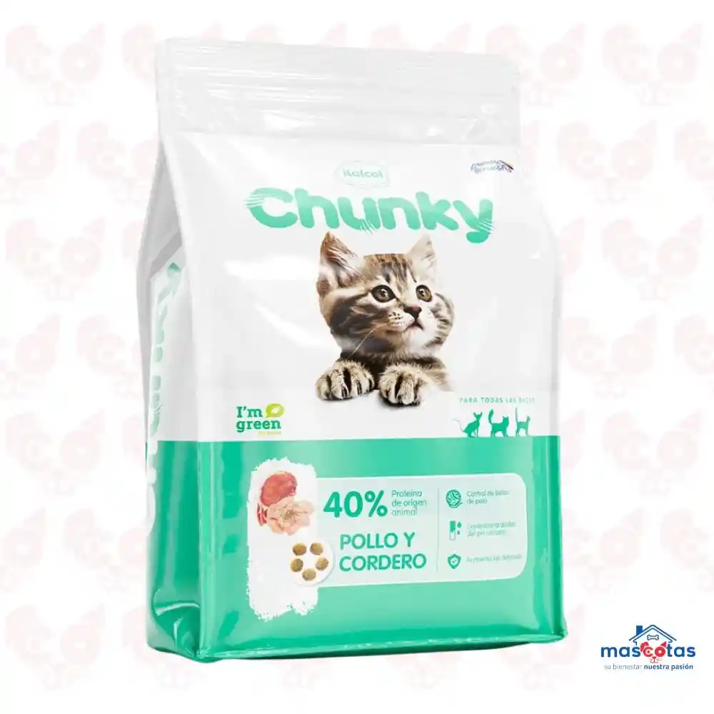 Chunky Gatitos es un concentrado para gatitos o gatos bebes con rico sabor a pollo y a cordero. Está fabricado con carne de verdad y tiene altos niveles de proteínas y nutrientes para contribuir a una alimentación completa y adecuada durante esta etapa en la cual los aspectos más importantes son el crecimiento y el correcto desarrollo del organismo. Es un alimento para gatitos ideal para empezar a suministrar después de la separación de la madre o el destete. Con niveles apropiados de vitaminas, minerales, proteínas, fibra, ácidos grasos, entre otros. Que favorecerán la salud del organismo en general, el desarrollo cerebral, la digestión y más.