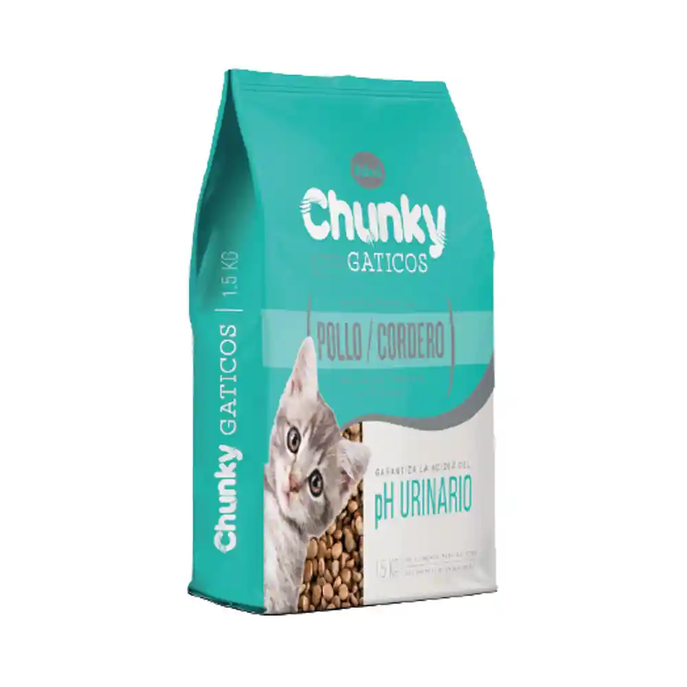 Chunky - Pollo Gatitos, es un alimento especialmente diseñado para gatitos para contribuir en su desarrollo y crecimiento posterior a la lactancia materna. Con niveles apropiados de vitaminas, minerales, proteínas, fibra, ácidos grasos, entre otros. Que favorecerán la salud del organismo en general, el desarrollo cerebral, la digestión y más.