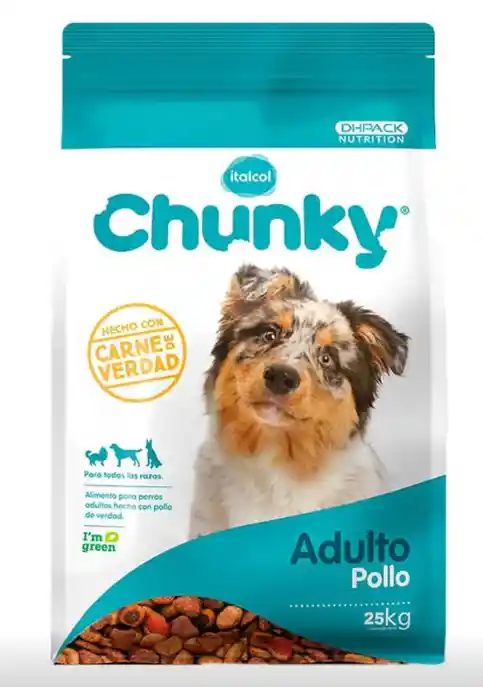 El concentrado para perros adultos Chunky con sabor a pollo y arroz será una excelente opción de alimentación saludable para tu perro. Su fuente principal de proteína viene del pollo y es un alimento fabricado bajo exigentes normas de calidad que proporcionará una nutrición completa y balanceada a tu perro adulto. Gracias a sus altos niveles de nutrientes como vitaminas, minerales, antioxidantes, ácidos grasos omegas, entre otros; Este concentrado contribuirá a la buena salud en general y al mantenimiento de la piel y el pelaje. Además, gracias al DH pack y a su alto nivel de fibra también favorecerá la digestión y la protección del tracto gastrointestinal.