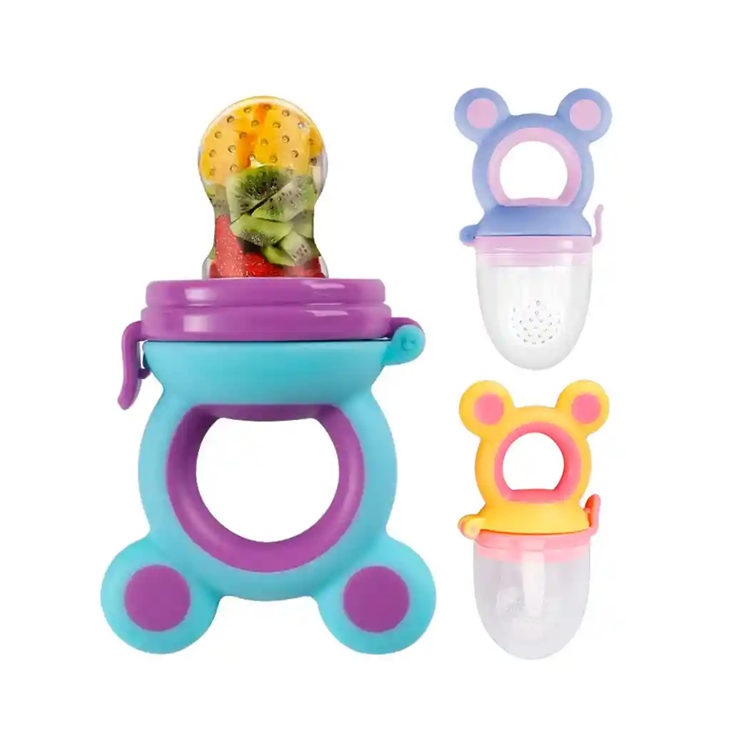 Chupa para frutas con diseño de orejitas de la marca OnlyBaby, con un diseño de silicona de malla suave hecha especialmente para bebés, para que sea fácil de consumir la fruta y suave para las encías de tu bebé. La elección perfecta para darle un dulcecito a tu pequeño. Características La Chupa para frutas con diseño de orejitas la puedes llenar con fruta suave o papilla, y tu bebé estará feliz de comer por sí mismo. Tu bebé lo agarrará fácilmente, de modo que desarrollará agarre, motricidad mano a boca y desarrollará su olfato y gusto. Nuestra Chupa para frutas con diseño de orejitas está hecha de silicona de grado alimenticio, no tóxica, sin BPA, sin plomo ni ftalatos. Los orificios no miden más de 2mm, así que no dejará pasar trozos grandes que podrían causar asfixia. Antes de usar se sugiere esterilizar la Chupa para frutas con diseño de orejitas con agua hirviendo o esterilizador de vapor. Puedes enjuagarlo con agua tibia después de cada uso o esterilizarlo cada vez. Es apto para lavavajillas y congelador.