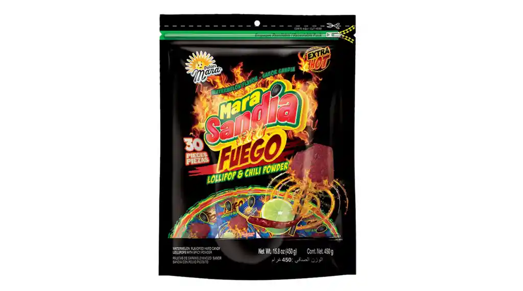 Chupetas Mara Sandía Fuego Chile x 30 Und son chupetas con un sabor único que combina la dulzura de la sandía con un toque picante de chile, creando una experiencia intensa y divertida. El empaque contiene 30 unidades, perfectas para compartir en reuniones, celebraciones o disfrutar en cualquier momento del día. Su mezcla de sabores dulces y picantes las convierte en una opción ideal para quienes buscan un dulce diferente y lleno de personalidad.
