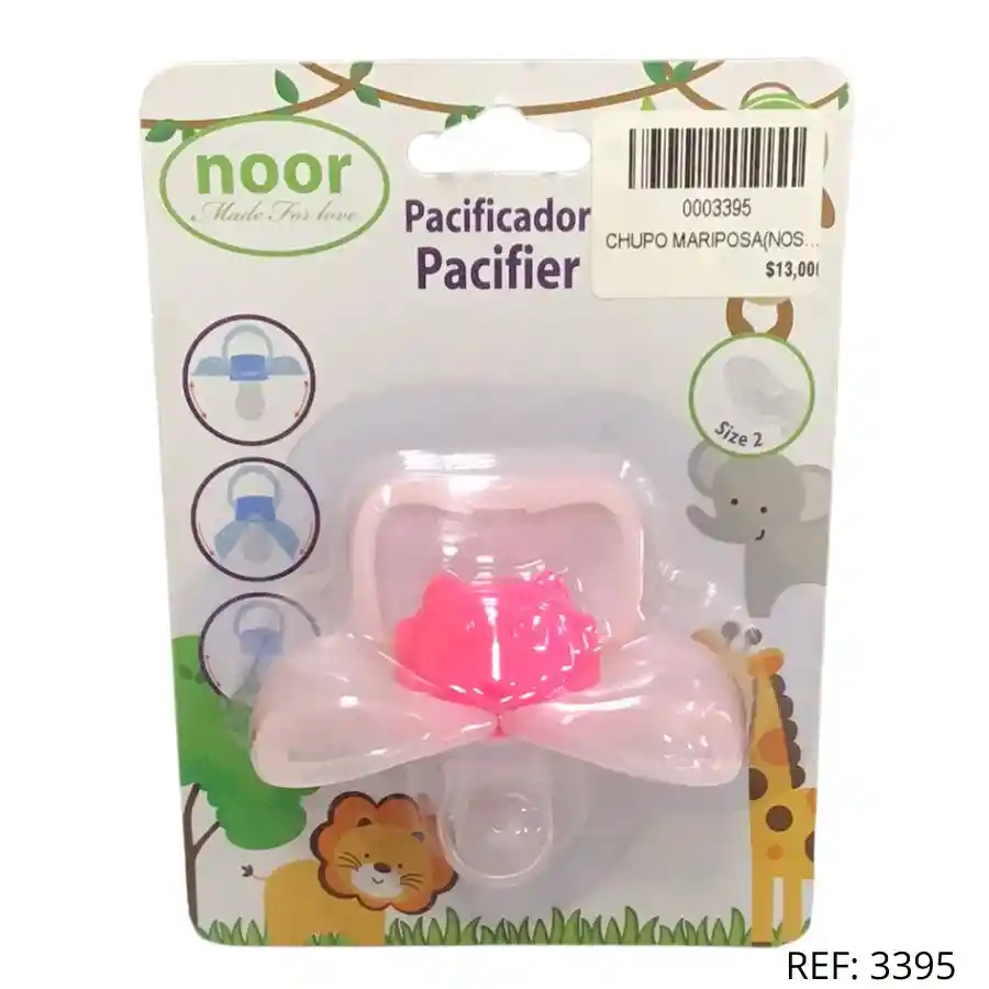 Chupo con diseño de mariposa en tono rosado. Ideal para bebés, suave y cómodo. Tamaño 2.