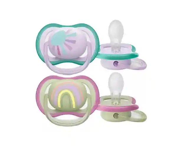 Diseñado para las necesidades de comodidad diarias de su bebé Chupón con diseños coloridos y brillantes Para una comodidad esencial 0-6m y 6-18m Anatómicos y sin BPA Pack de 2 Nueve de cada diez bebés aceptan nuestros chupetes* Los bebés saben lo que les gusta. Preguntamos a las mamás cómo responden sus pequeños a las tetinas Philips Avent y nueve de cada diez bebés aceptan nuestros chupetes.* Diseño anatómico para un desarrollo natural de los dientes Nuestra tetina de silicona flexible tiene una forma simétrica que ayuda a cuidar el paladar, los dientes y las encías de su bebé a medida que se desarrollan. Fabricado en nuestra premiada sucursal en el Reino Unido Puede estar seguro de que la comodidad de su bebé está en buenas manos. Este chupete se fabricó en nuestra premiada sucursal en el Reino Unido.* Nuestro mango de seguridad le permite extraer fácilmente el chupete de su bebé en cualquier momento. Incluso las manos pequeñas pueden sostenerlo. La caja que trae los chupos, sirve también para esterilizarlos. Fácil de esterilizar para una mayor higiene Es fácil mantener la limpieza de los chupetes de su pequeño: basta con ponerlos en el esterilizador o sumergirlos en agua hirviendo.