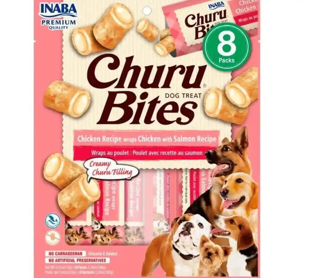 snack delicioso y saludable para tu perro , en el exterior una suave pasta de pollo horneado y en el interior un cremoso relleno
