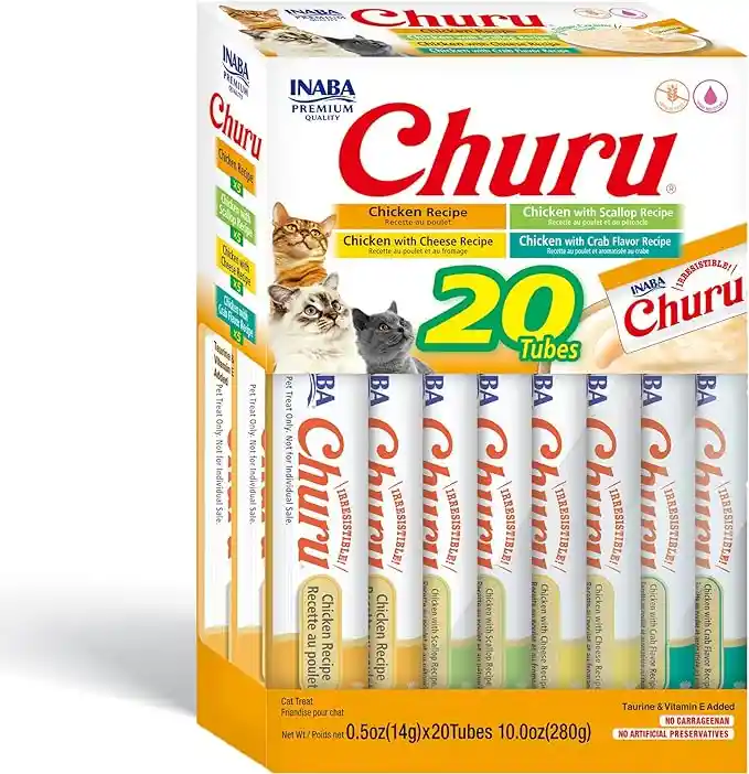 Tienen un alto contenido de humedad necesario para la salud de los felinos. Simplemente rasgue un tubo y apriételo un poco para alimentar a mano a su felino con estos snacks sin cereales ni conservantes. También puede verterlo en un plato o añadirlo por encima de alimentos húmedos o secos.