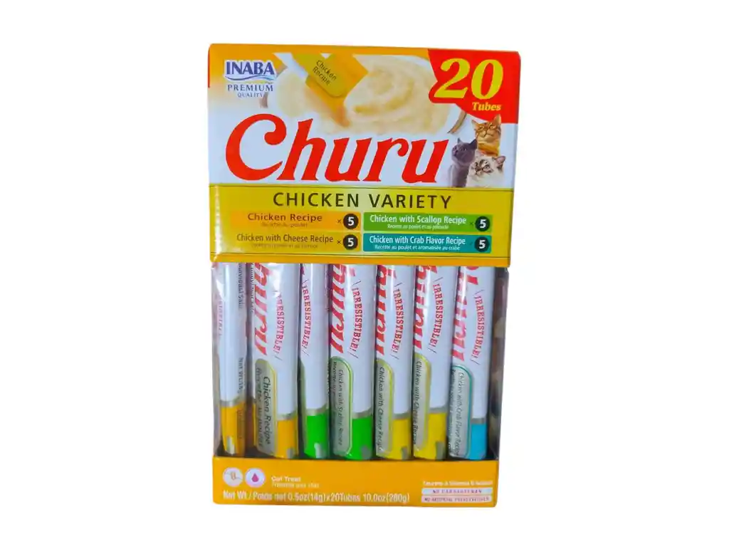 Caja con 20 sobres de snack cremoso hecho con pollo de granja. Alta humedad y pocas calorías, ideal para hidratar, estimular el apetito y dar medicinas. Muy palatable y sin cereales ni conservantes.