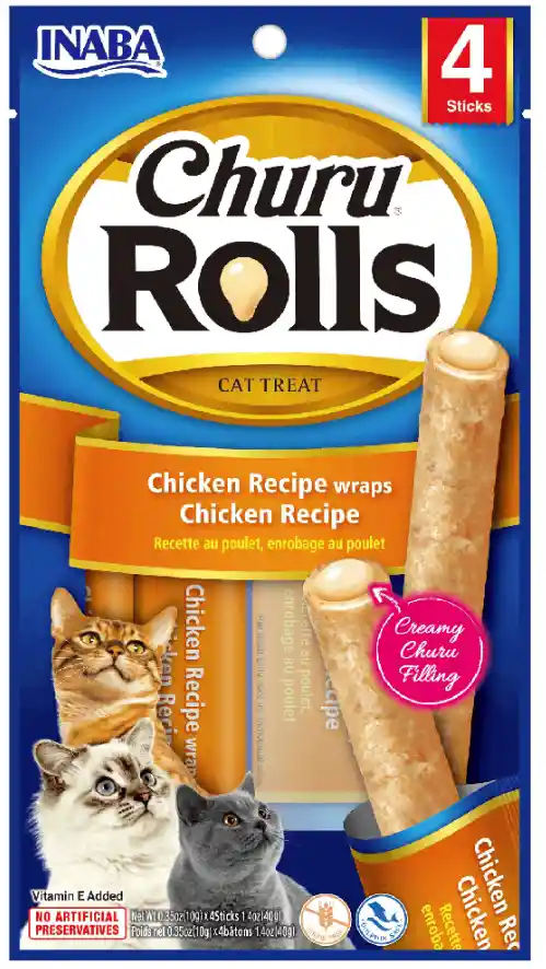 Churu Rolls de Inaba son el snack ideal para consentir a tu gato. Con un peso neto de 40 g, cada paquete contiene cuatro unidades individuales que garantizan frescura en cada bocado. Su sabor a pollo, proveniente de aves criadas en granja, asegura una experiencia deliciosa y nutritiva para tu mascota. Este producto ofrece dos texturas en un solo bocado: una pasta de pollo suave horneada por fuera y un relleno cremoso de Churu® por dentro. La combinación de estas texturas no solo deleitará a tu gato, sino que también lo mantendrá entretenido mientras disfruta de su merienda. Diseñado específicamente para gatos, este snack húmedo es perfecto para aquellos que buscan una opción sabrosa y saludable. Sorprende a tu felino con Churu Rolls y observa cómo se convierte en su golosina favorita.