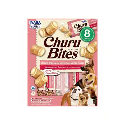 Churu Bites Chicken With Salmon Recipe Wraps, es un snacks para perros que está hecho con deliciosos ingredientes de alta calidad, incluyendo pollo de granja y/o atún natural capturado en la naturaleza.