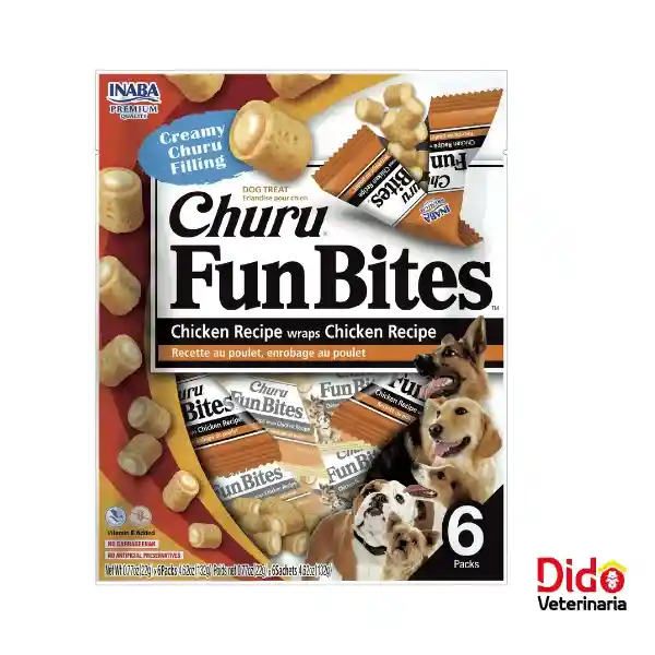 Snack Churu para perros con sabor a pollo. Textura cremosa y altamente palatable. Perfecto como premio diario o para administrar medicamentos. Pack 6 unidades.