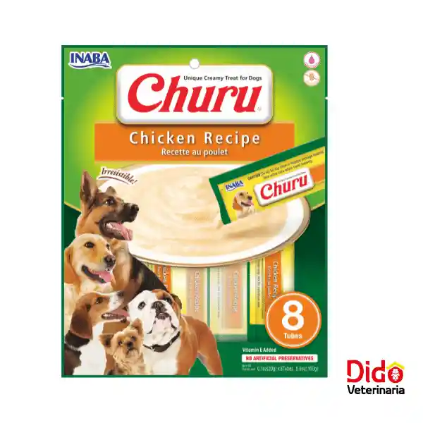 Snack líquido Churu para perros con sabor a pollo. Cremoso, irresistible y nutritivo. Aporta hidratación y es perfecto como complemento o premio. Pack 8 unidades.