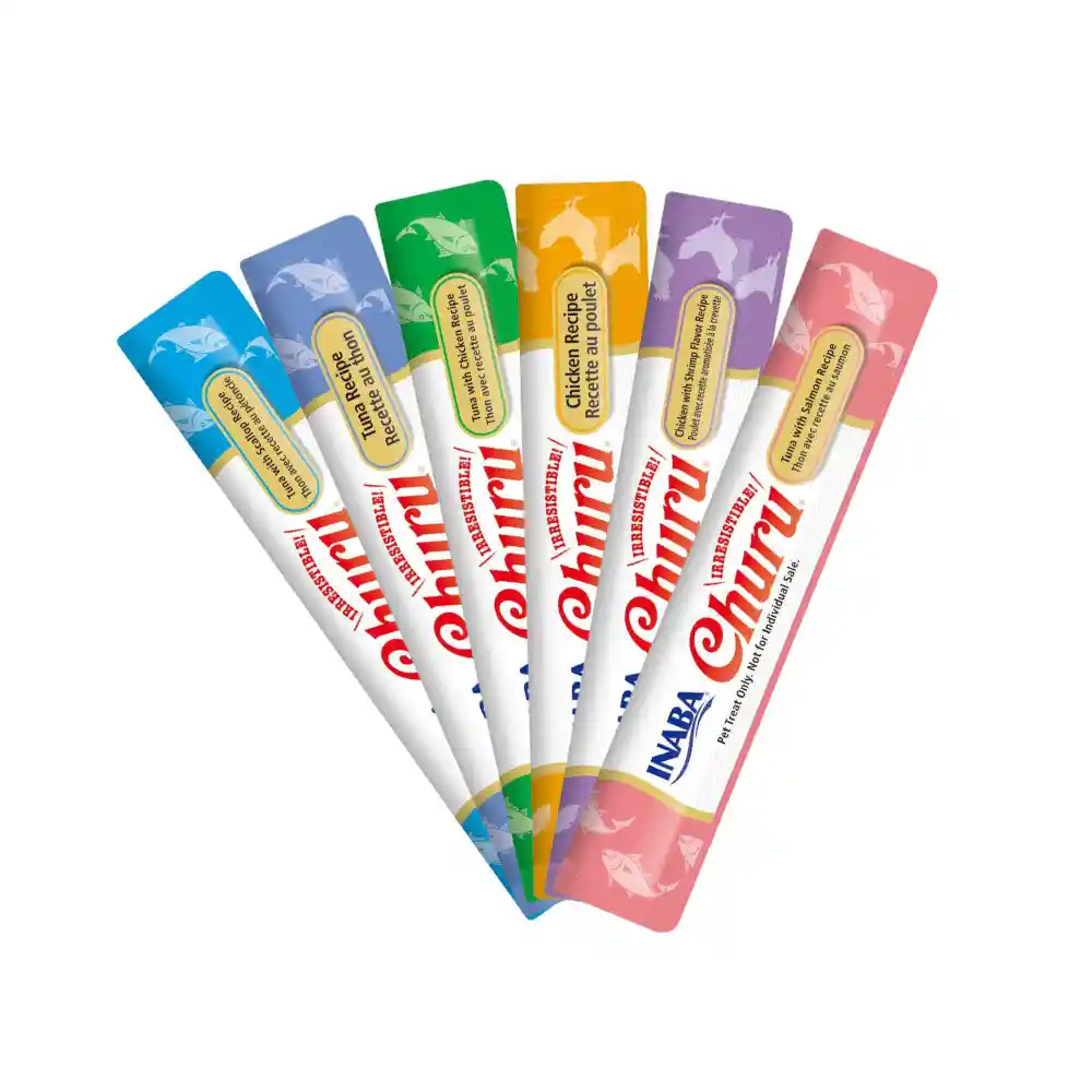 Churu Salmon Churu Atun y pollo, Churu atun o Churu Atun y conchas; venta por unidad A tu minino le encantará darle una pequeña probada a la exquisita receta de InabaChuru una deliciosa receta cremosa elaborada con Atún y conchas de viera real capturado en la naturaleza, brindándole a tu felino un bocado saludable. Taurina. Vitamina E. Contienen un alto nivel de humedad. Puedes usarlo como Snack para consentir o premiar a tu gato.